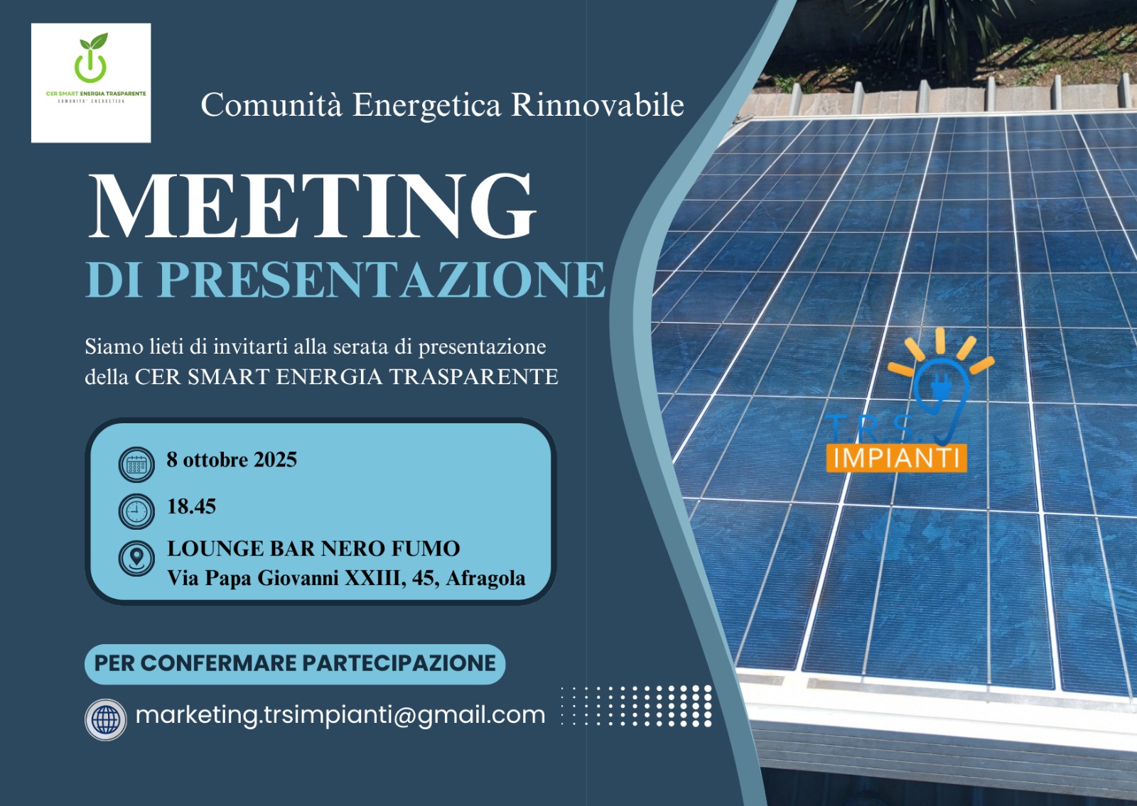 Si è tenuto mercoledì 8 ottobre 2025 ad Afragola il Meeting di presentazione del progetto Cer Smart in collaborazione con TRS IMPIANTI.